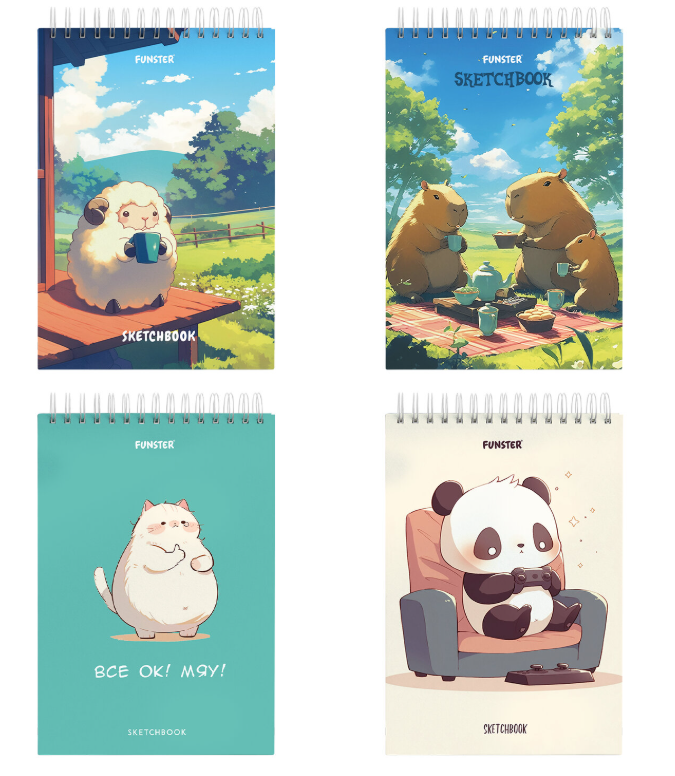 Скетчбук, белая бумага 100 г/м2, 140х201 мм, 60 л., гребень