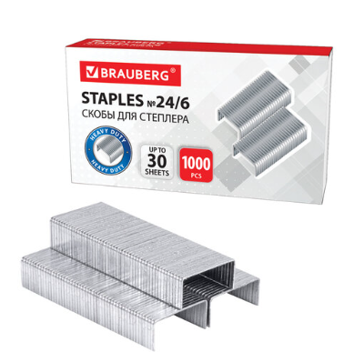 Скобы для степлера №24/6, 1000 штук, BRAUBERG, до 30 листов