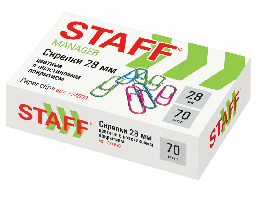 Скрепки 28 мм, STAFF "Manager цветные, 70 шт., в картонной коробке