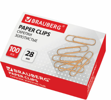 Скрепки 28 мм, золотистые, 100 шт., в картонной коробке