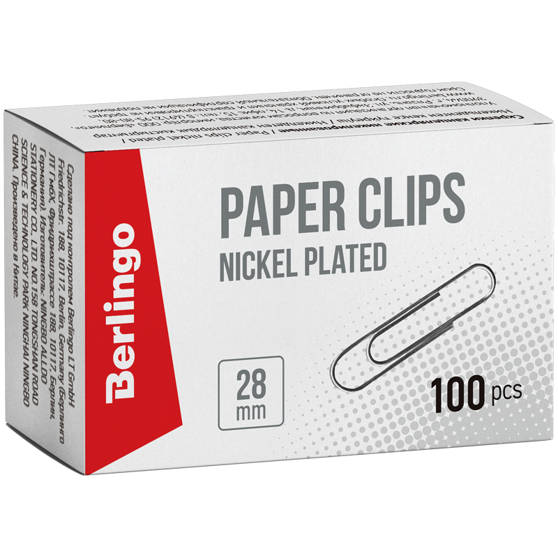 Скрепки 28мм Berlingo 100шт. никелированные карт. упаковка
