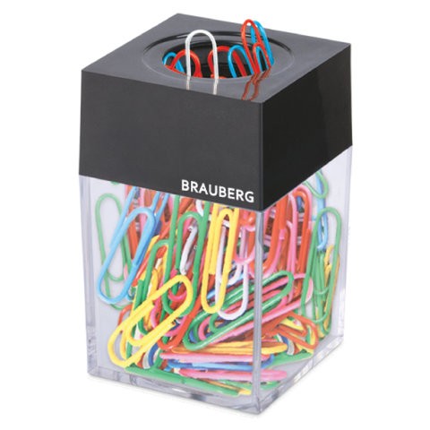 Скрепочница магнитная со 100 цветными скрепками 28 мм прозрачный корпус