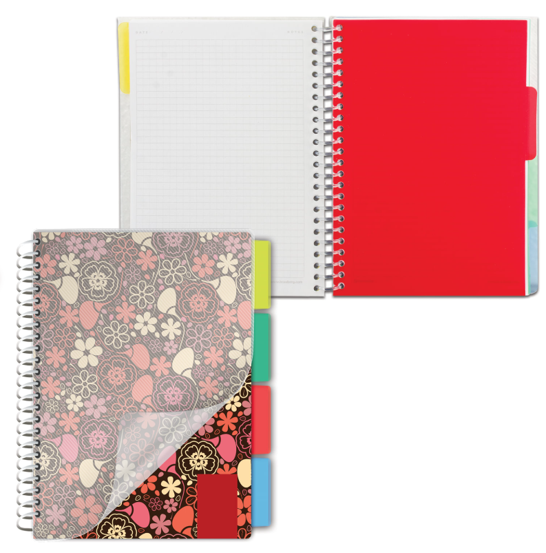 Тетрадь-блокнот 150 л., A5, 170x215 мм клетка, гребень, обложка пластиковая, 4 разделителя