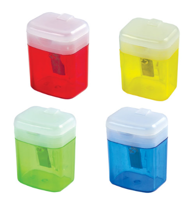 Точилка для карандашей с контейнером и крышкой, прямоугольная, тонированный ассорти