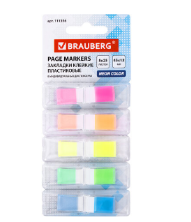 Закладки клейкие BRAUBERG Неоновые пластиковые в диспенсерах 45*12 мм 5 цветов 25 листов