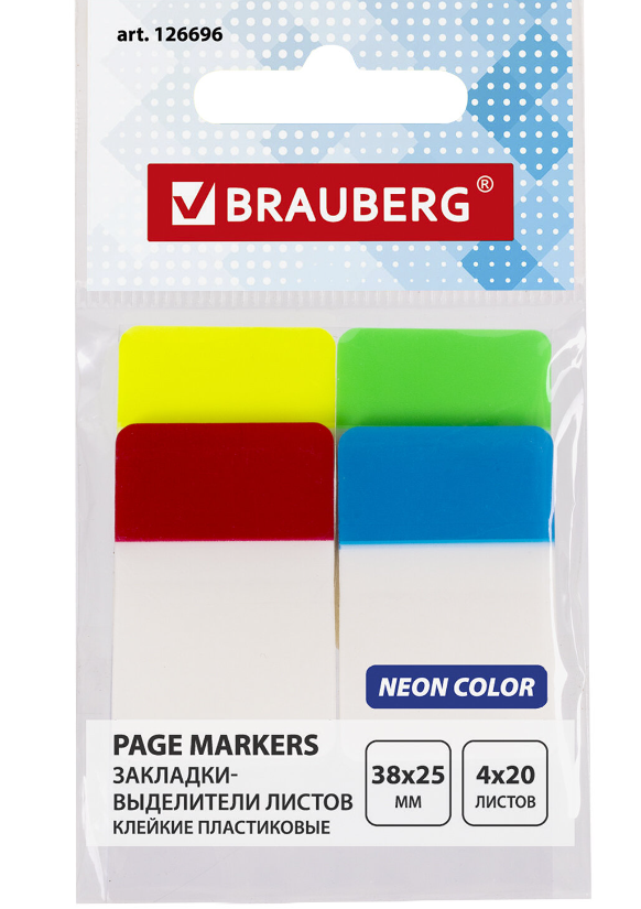 Закладки-выделители листов клейкие BRAUBERG пластиковые 38х25 мм 4 цвета х 20 листов