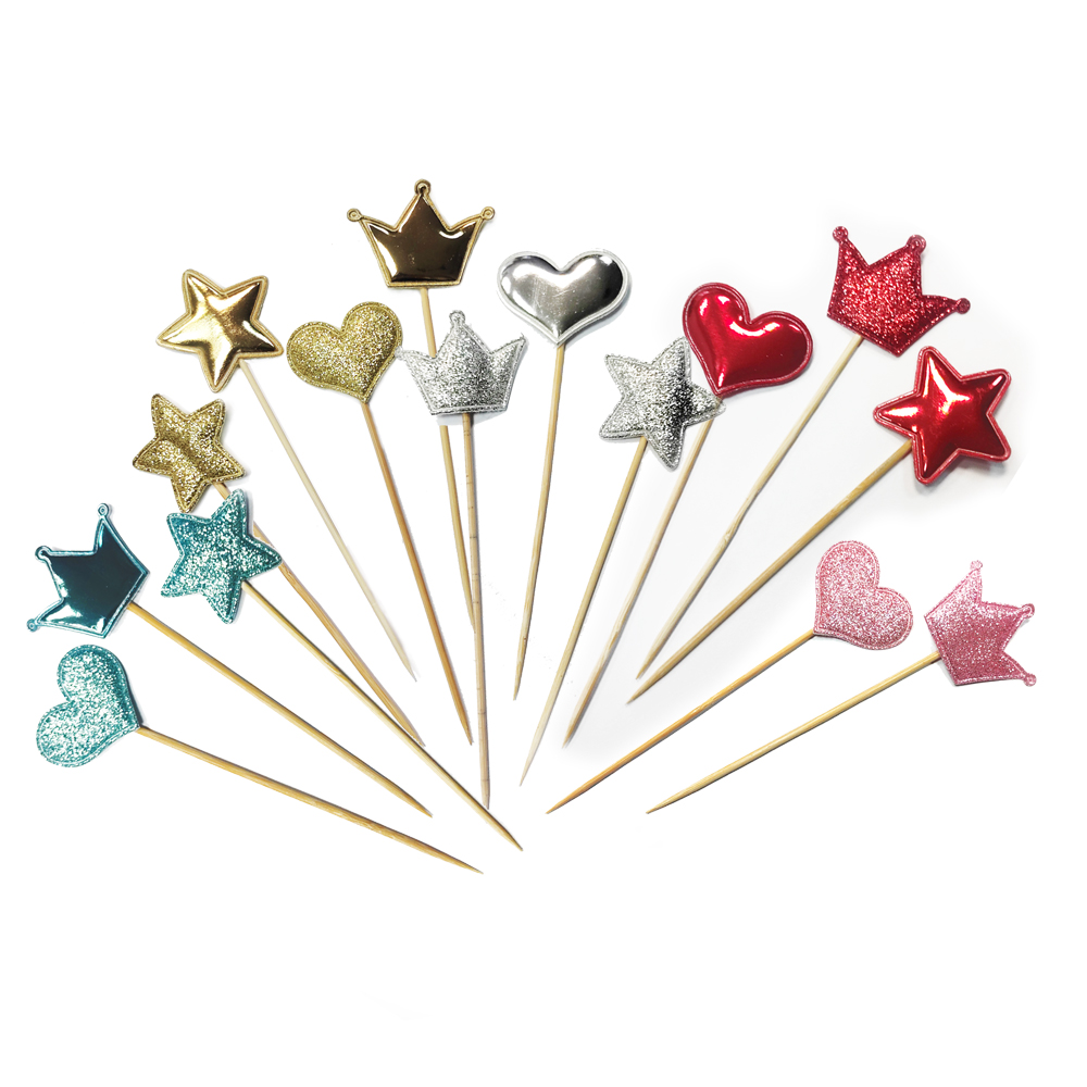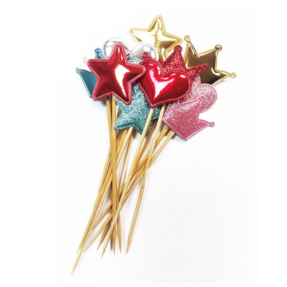 Пика деревянная Ассорти (сердце, звезда, корона) 15шт/упак
