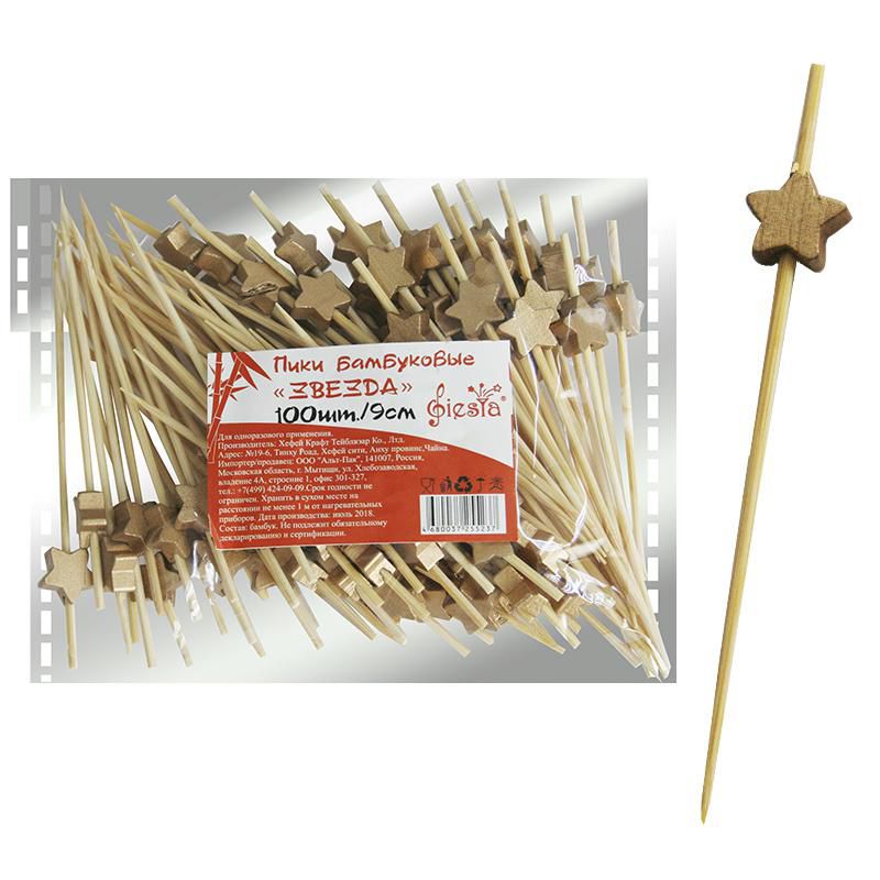 Пика деревянная Звезда 9см 100шт/уп