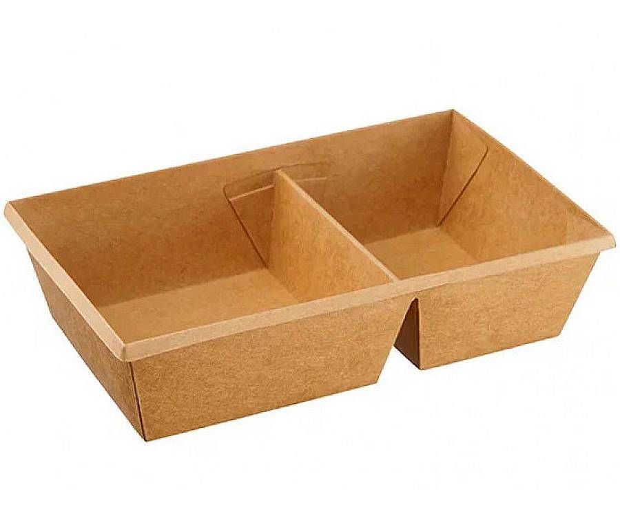 Ланч-бокс картонный 2-х секционный с прозрачной крышкой крафт 1000мл 220*160*55 1/140