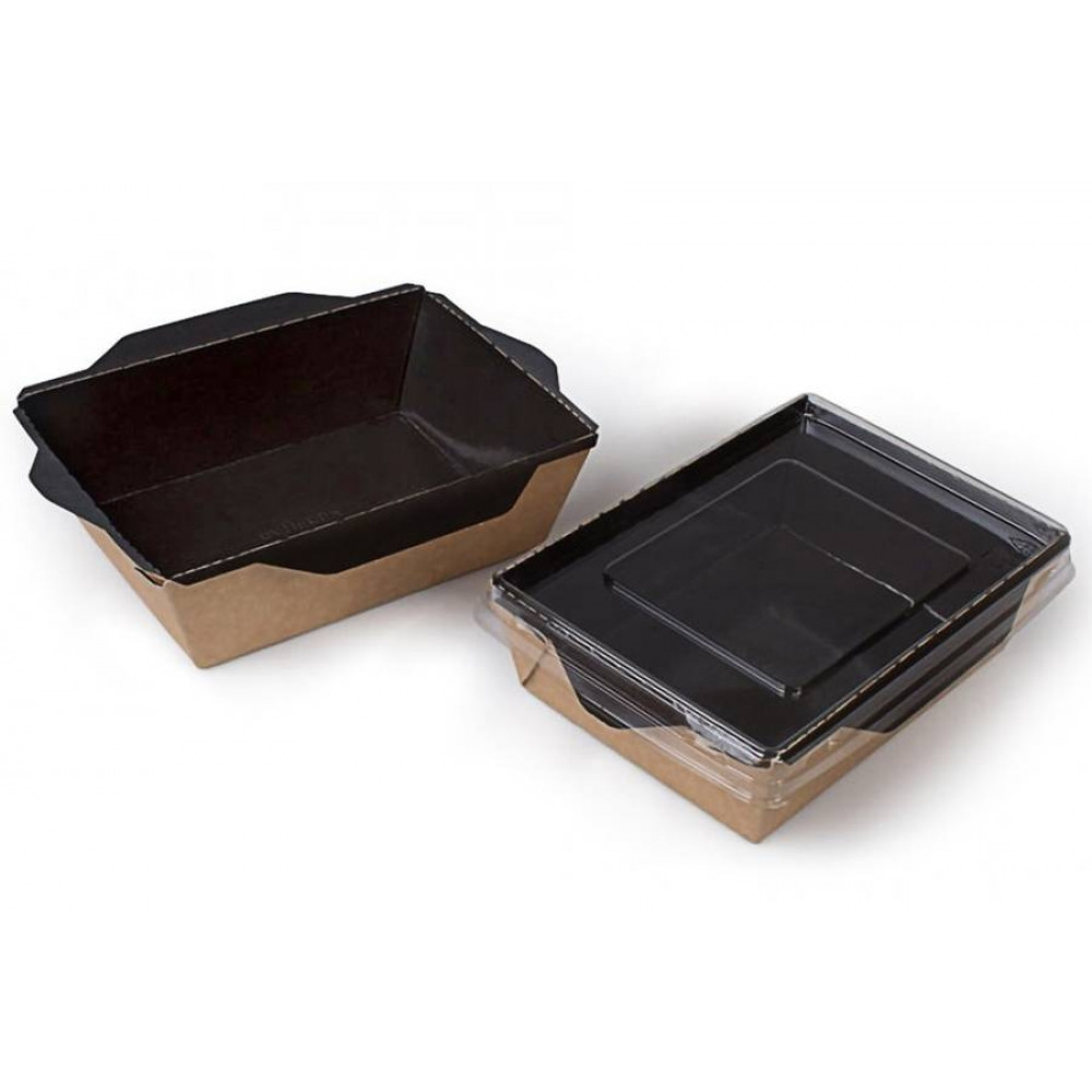 Ланч-бокс картонный с прозрачной крышкой черное дно 400мл 140*100*45 1/50