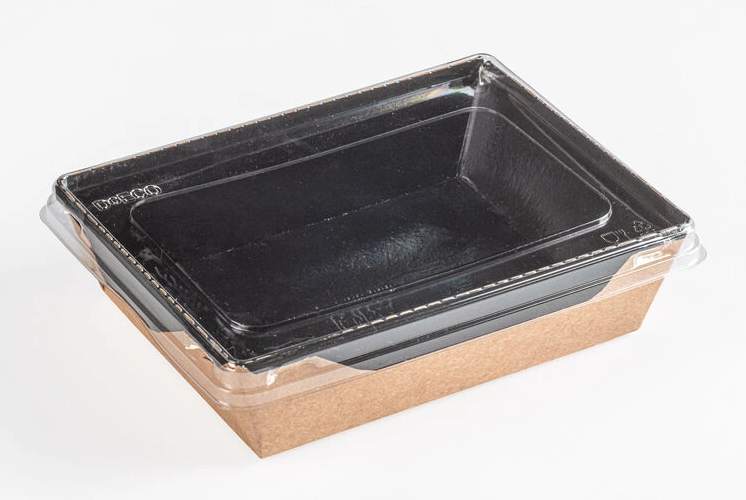 Ланч-бокс картонный с прозрачной крышкой крафт 800мл черное дно 180*120 50/150