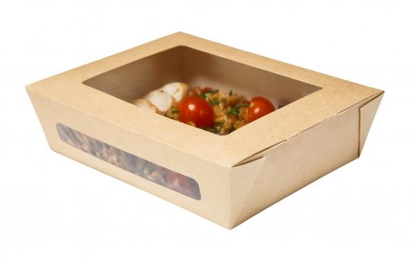 • Ланч бокс с крышкой 2 окна 600 мл 130/150*95/115*50 мм, крафт картон
