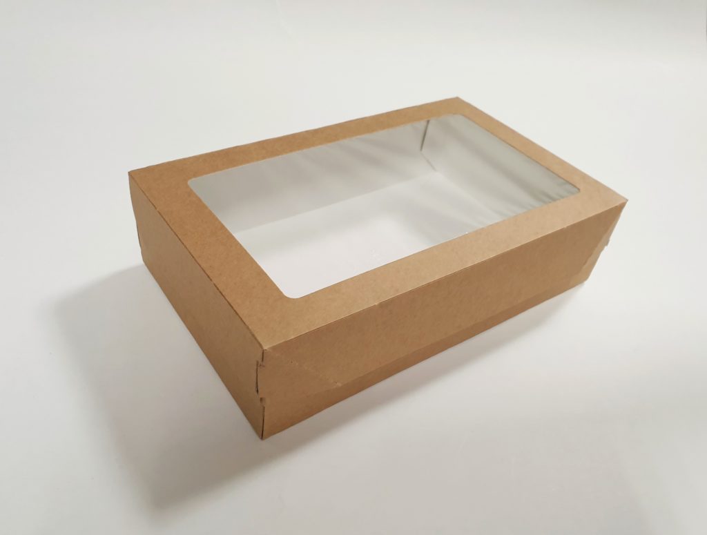 Ланч бокс самосборный с окном 230*140*60 крафт картон 1/50/150