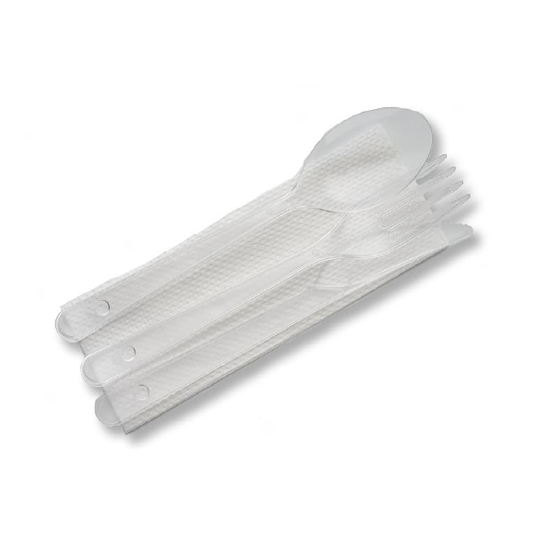 Набор одноразовых столовых приборов 3 (вилка 180 прозр, нож 180 прозр, салфетка 24х24) 300шт