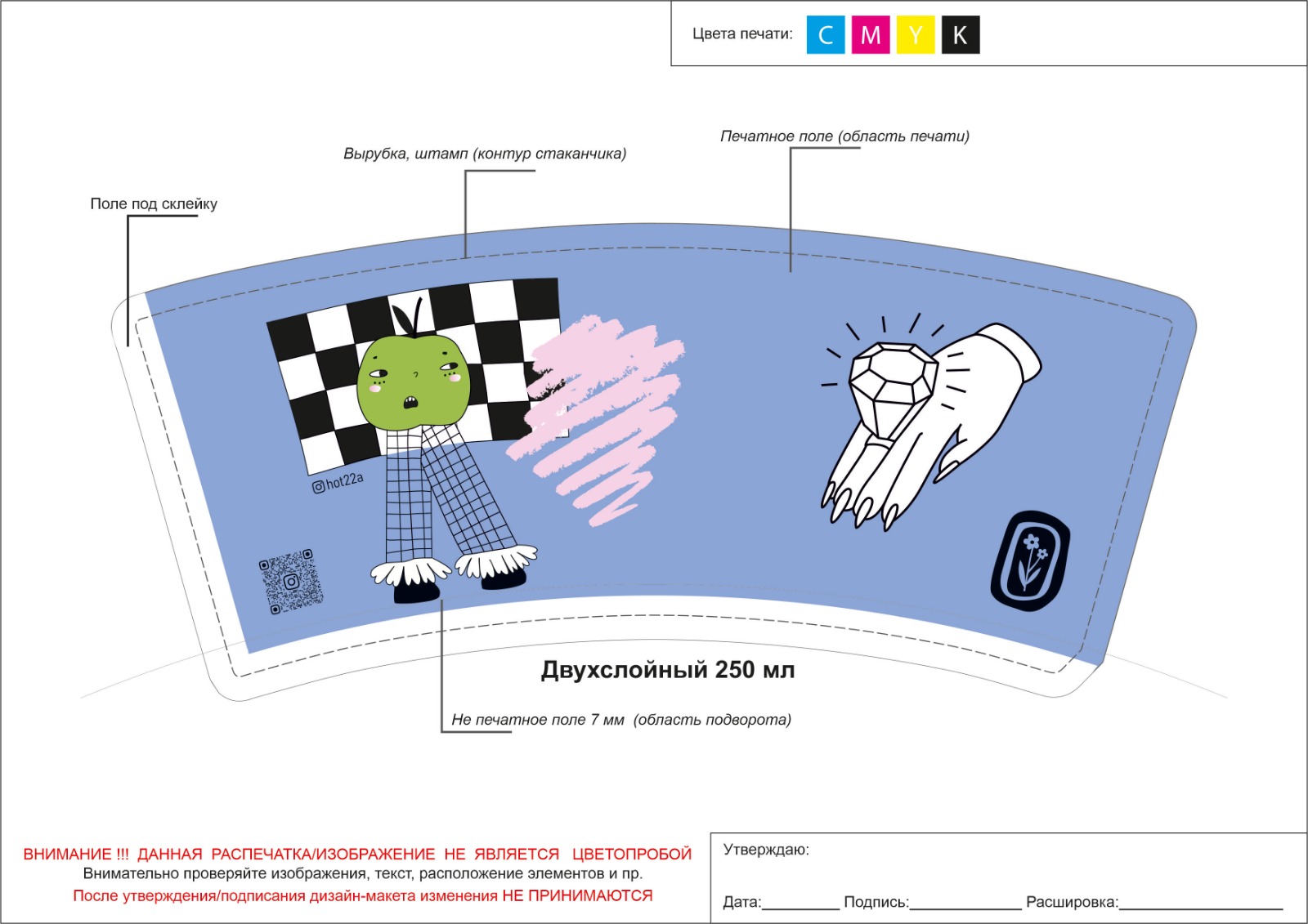 Стакан бумажный двухслойный 350мл индивидуальная печать 22А фиолетовый матовый