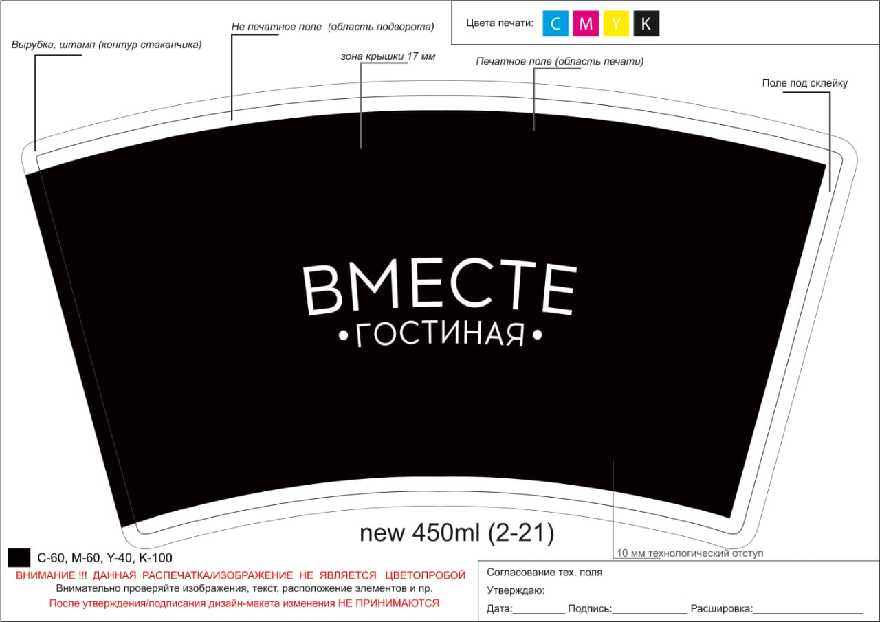Стакан бумажный однослойный 450мл индивидуальная печать ВМЕСТЕ