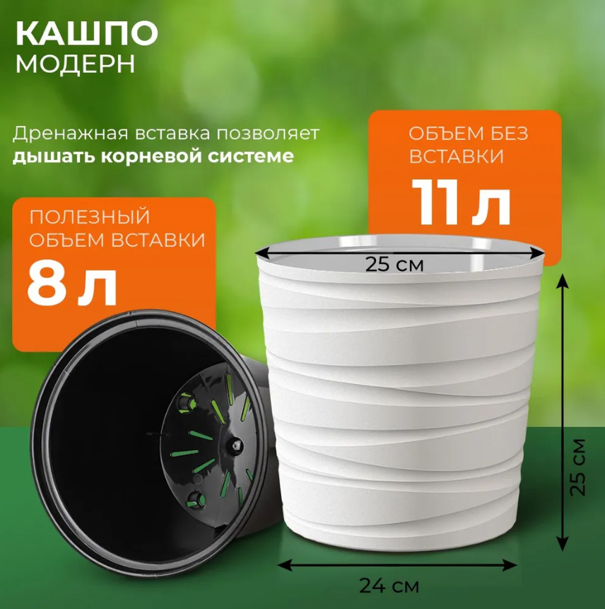 Кашпо напольное Модерн 8 л цвет белый