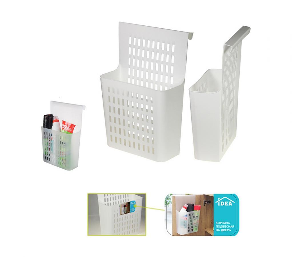 Подвесной контейнер от Idea изготовлен из прочного полипропилена белого цвета. Подвесная корзина навешивается изнутри на дверцу шкафа. Аксессуар существенно экономит пространство. Корзина навесная удобна для хранения средств бытовой химии, хозяйственных мелочей и многого другого. Удобная емкость отличается вместительностью. Контейнер навесной легкий по весу и не повредит поверхность дверцы. Материал изделия не имеет резкого запаха, долговечен и устойчив к воздействию высокой влажности. Размеры органайзера на дверь - 37 * 25 * 13 см. Его гладкая поверхность легко моется. Подойдет для дверцы шириной до 2 см. Такие приспособления для хранения вещей не собирают влагу благодаря специальным отверстиям, поэтому подходят для использования в помещениях с высокой влажностью. Такая корзинка подвесная будет хорошо смотреться на кухне или в ванной комнате.