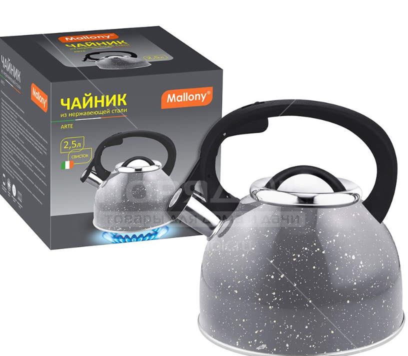 Чайник нержавеющая сталь 2,5л Arte серый со свистком
