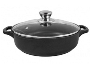 Жаровня а/пр литая 28см стеклянная крышка Комфорт ТМ Традиция