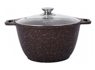Кастрюля литая 4л стеклянная крышка Кофейный мрамор индукция