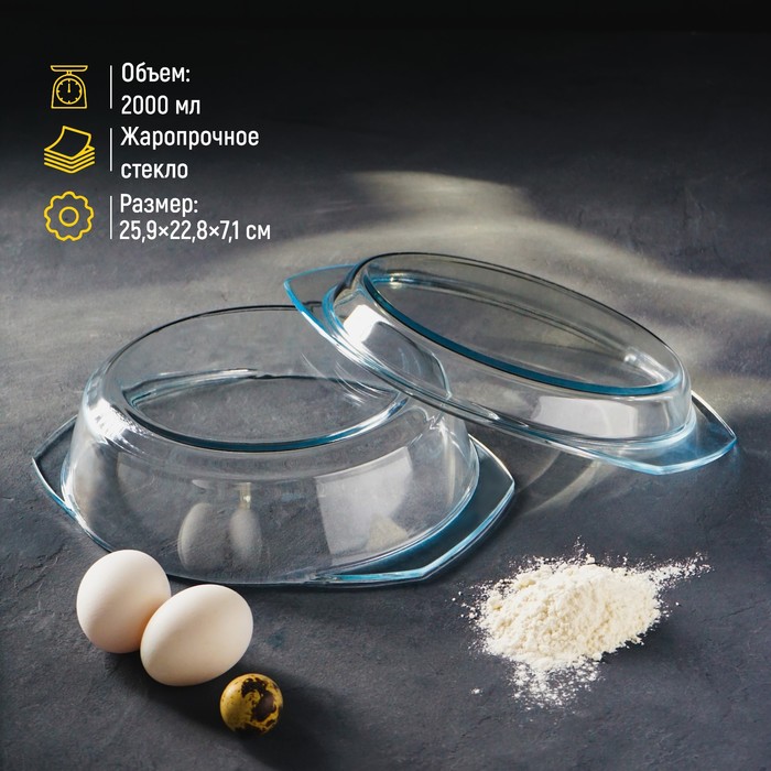 Кастрюля из жаропрочного Доляна 2л, 23,9*20,5*9см с крышкой