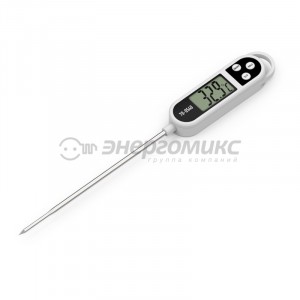 • Данный цифровой термометр отличает широкая область применения, низкое потребление энергии, высокая стабильность работы, высокая точность, компактность и простота в обращении. Прекрасно подходит для измерения температуры напитков, молока, кофе и других продуктов. Характеристики: Диапазон измеряемых температур: –50...+300 °C Размер: 220х20 мм Питание: батарейка 1,5 В (LR44) ? 1 шт. ( не в комплекте )