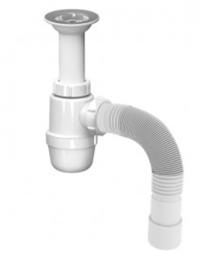 Сифон для кухни 1 1/2" х 40, малый с удлиненной горловиной, гибкая труба 40х40/50