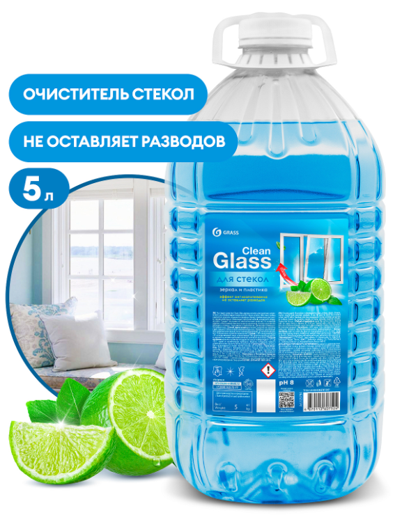 Средство для мытья стекол и зеркал 5л "Clean Glass" голубая лагуна