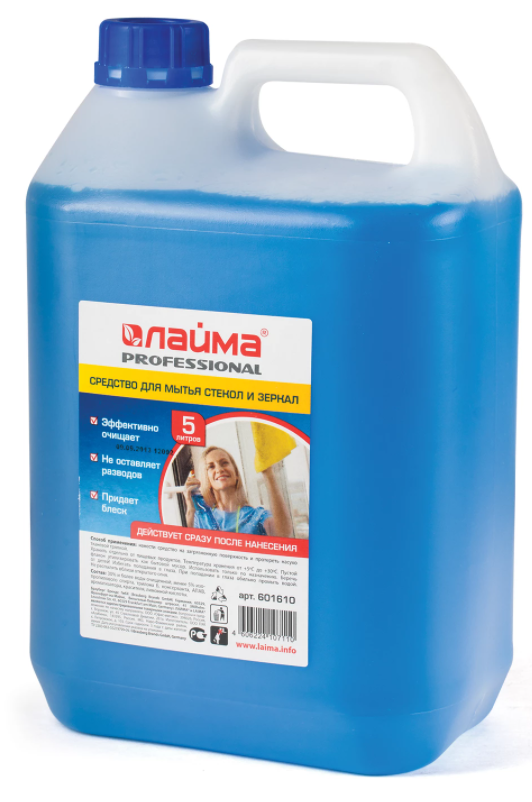 Описание Средство для мытья стекол и зеркал LAIMA PROFESSIONAL - эффективное средство для мытья оконных стекол, витрин, зеркал, автомобильных стекол, кафеля, хрусталя, фарфора, фаянса, экранов телевизоров и мониторов. Удаляет даже застаревшую грязь, пыль и жир. Средство быстро высыхает, не оставляет разводов, обладает антистатическим действием. Особенности: - не содержит метанол и аммиак; - не имеет раздражающего запаха; - безопасно при использовании по назначению. Состав: очищенная вода 30% и более, менее 5% изопропилового спирта, трилона Б, консерванта, АПАВ, ароматизатора, красителя, лимонной кислоты