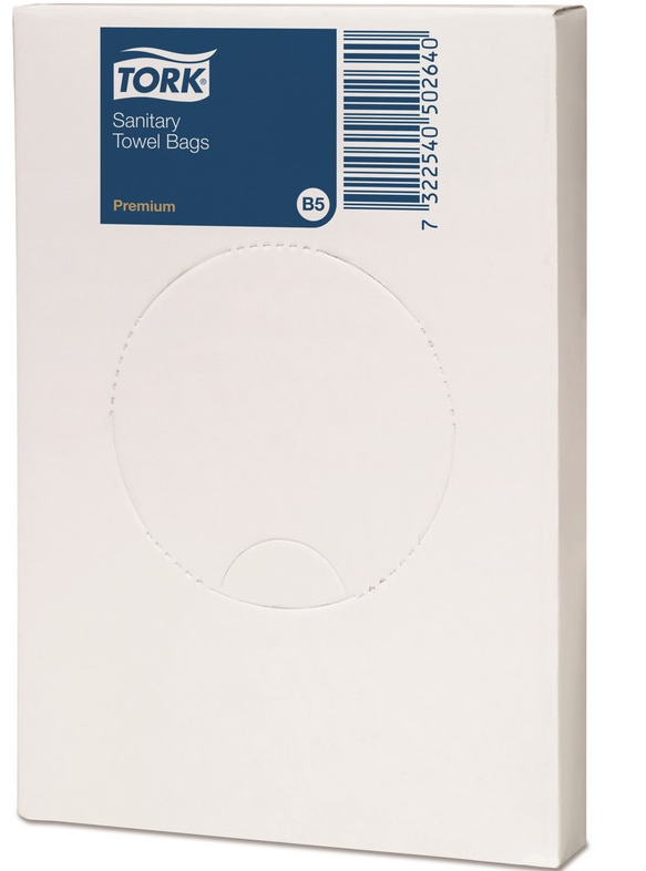 • Пакеты гигиенические в пачках Tork B5 полиэтиленовые 48 пачек по 25 штук (артикул производителя 204041) Гигиенические пакеты полиэтиленовые. В 1 пачке 25 штук. 48 пачек в коробе. Применяются в туалетных комнатах, возможно использование с помощью диспенсера или из упаковочной картонной коробочки с перфорированным отверстием. Ёмкость 2 л. Используются для удобства утилизации гигиенических отходов. Можно использовать с держателями для гигиенических пакетов Tork. Сырьё: полиэтилен.