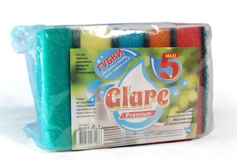 • Губка для посуды GLARE с абразивом, МАКСИ, 5 штук.