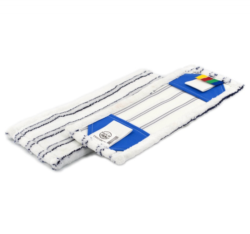 Насадка Моп 40*12 плоский микрофибра+мягкий абразив ухо+карман белый с полосой
