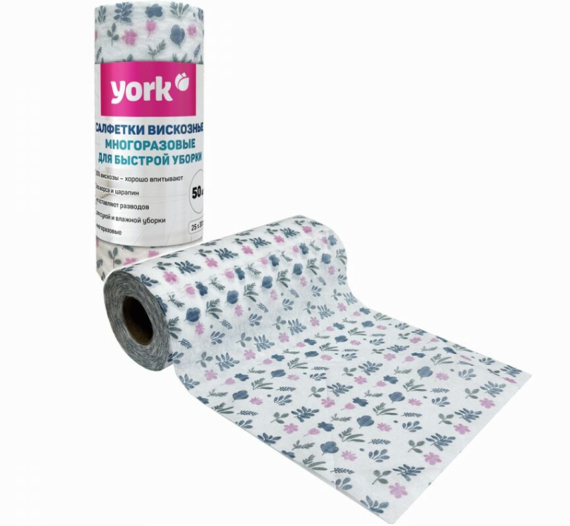 Салфетки для уборки в рулоне 25*30см вискоза Йорк 50шт/рул