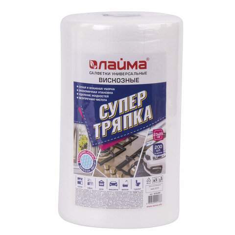 Салфетки универсальные в рулоне 200 шт 23х25 см вискоза