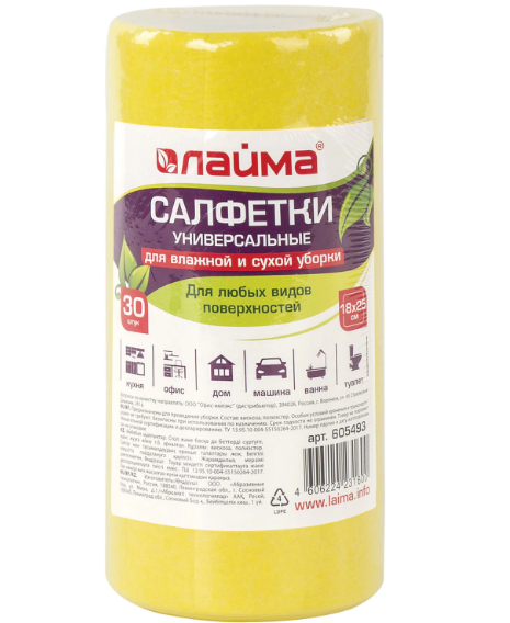 • Универсальные салфетки ЛАЙМА в рулоне предназначены для ухода за различными видами поверхностей. Могут использоваться как в сухом, так и во влажном виде.