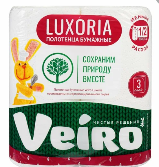Полотенце бумажное Виеро 2 рулона 3х сл Luxoria 1/12