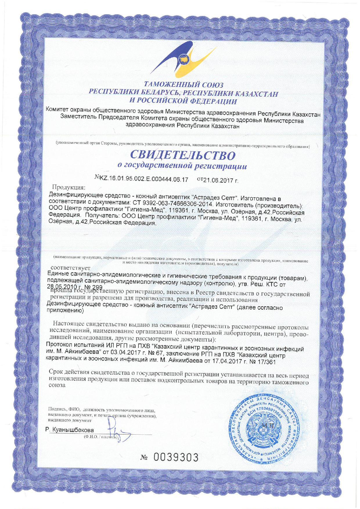 Кожный антисептик Астрадез СЕПТ безспиртовой 1 литр 1/10