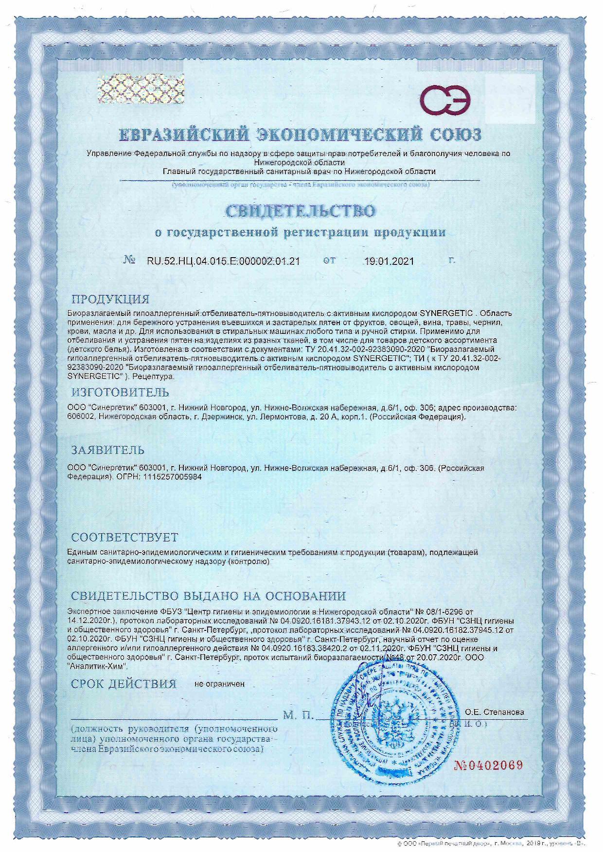 Отбеливатель для белья и поверхностей Synergetic 1л 1/8