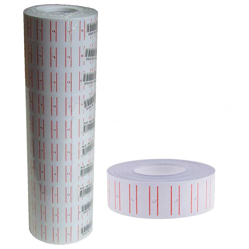 Лента для этикет пистолета 21*12 белая с красной полосой 1/10