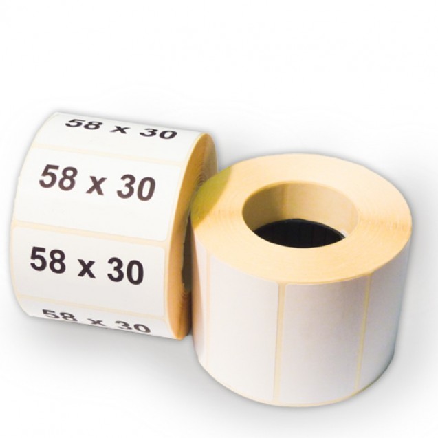 Белые этикетки из термобумаги ЭКО в рулонах размера 58 на 40, печать осуществляе...