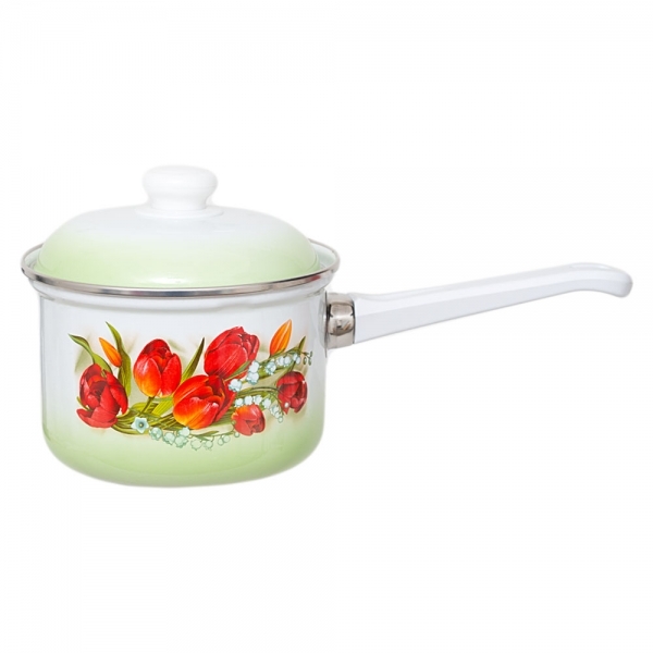 Ковш эмалированный 1,5л с рисунком с крышкой