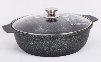 Кастрюля-жаровня литая 3л стеклянная крышка Светлый мрамор ТМ KUKMARA