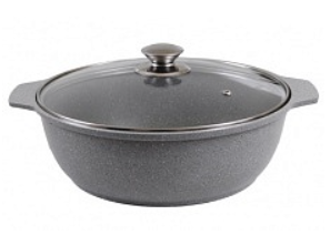 Кастрюля-жаровня литая 3л стеклянная крышка Светлый мрамор ТМ KUKMARA