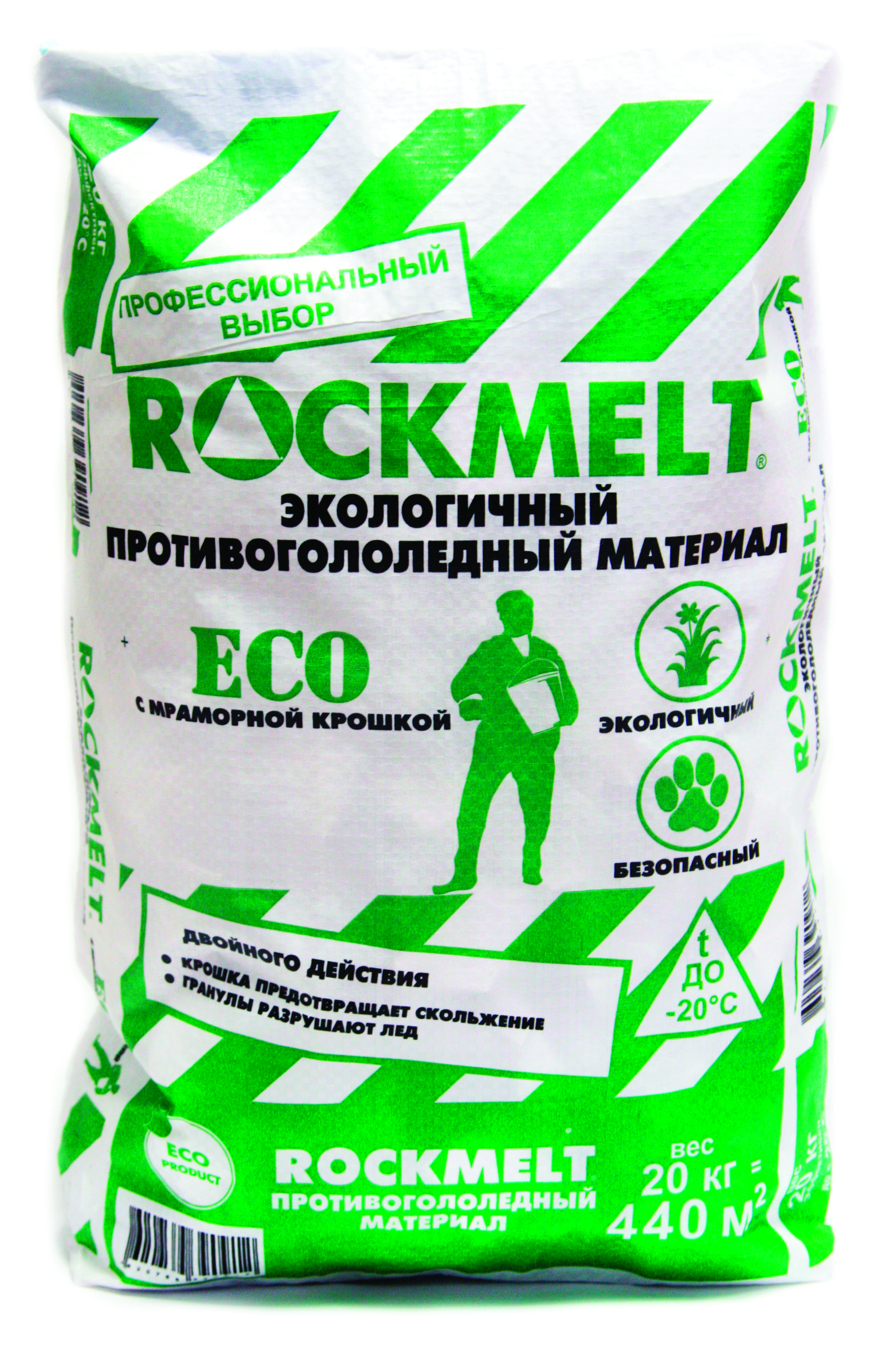 Антигололед Rockmelt Eco двойного действия с мраморной крошкой 20 кг