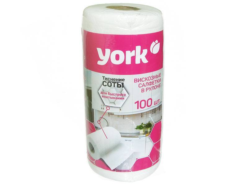 Салфетки для уборки в рулоне 25*22,5см вискоза Йорк 100шт/рул